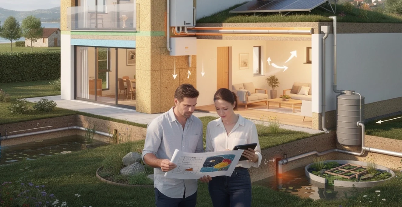 Une maison bioclimatique performante ne se limite pas à l’énergie thermique. La gestion de l’eau et l’intégration des énergies renouvelables complètent la démarche pour tendre vers un habitat réellement sobre et résilient. L’objectif est de réduire la dépendance aux réseaux, de lisser les consommations et d’exploiter au mieux les ressources locales : pluie, soleil, chaleur du sol.