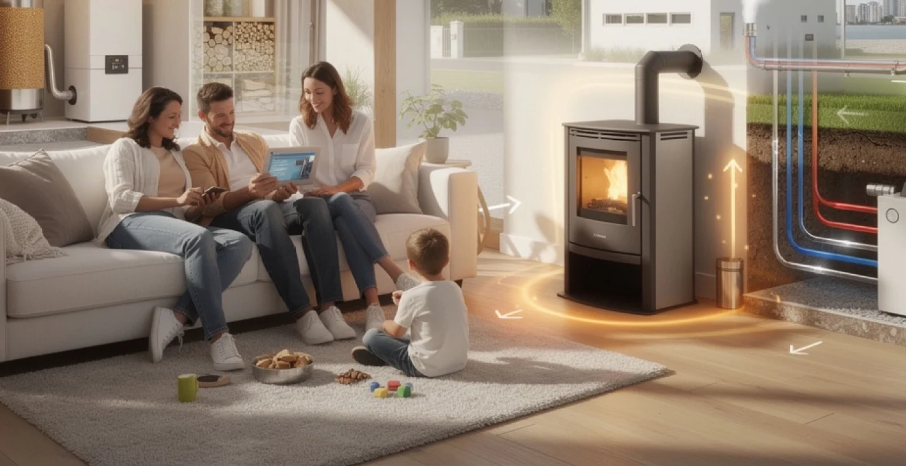 Pour les maisons individuelles, les poêles à bûches haute performance représentent une solution de chauffage écologique appréciée pour son confort et sa convivialité. Les fabricants français Invicta et Godin se distinguent par une large gamme de poêles labellisés Flamme Verte, affichant des rendements supérieurs à 75 % et des émissions de particules très réduites. Contrairement aux anciens foyers ouverts, ces appareils fermés permettent de tirer pleinement parti du pouvoir calorifique du bois tout en limitant les pertes de chaleur.